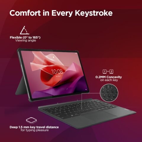 Lenovo Original Tab P12 Keyboard Detachable,3-Point Pogo-Pin Connectors Wireless Keyboard with Trackpad/Touchpad Tablet(Ultra-Thin,Productivity Enabling Hot Keys(Suitable for Tab P12,Zg38C05230)),Grey