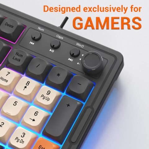 Ant Esports MK800 Pro Wired Mecha Membrane Backlit Gaming Keyboard with 87 Keys Sturdy and Lightweight Compact Numeric Pad Keyboard for Home Internet Cafe Game Room Offices_ Grey, Beige, Orange