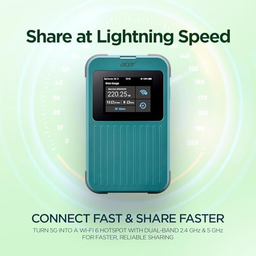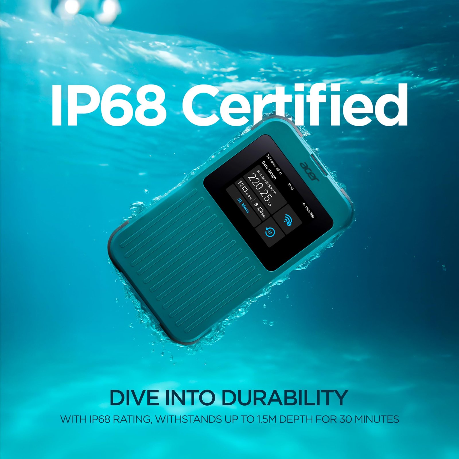 Acer Connect M4 5G Mobile Hotspot | WiFi 6 Dual Band | Connect up to 16 Devices | Access Networks in 135+ Countries I 2.4” Touchscreen | 8000mAh Battery | Tri SIM | Rugged IP68 | USB-C Fast Charging