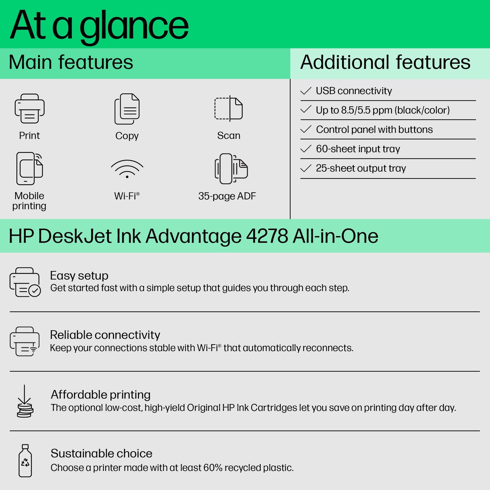 HP Ink Advantage 4278 WiFi Colour Printer – Print/Scan/Copy with ADF Ideal for Home/Small Office