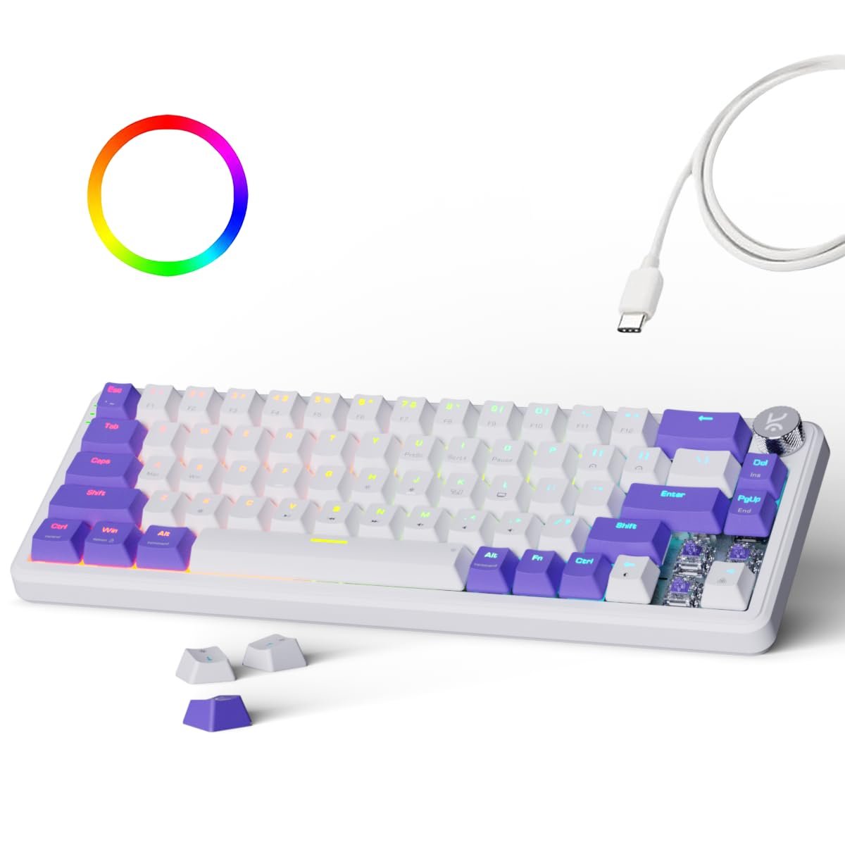 Kreo Hive 65 RGB Anti-ghosting Gaming Keyboard | Wired Mechanical Keyboard with RGB Backlight | 5 Pin Hot-Swap | Detachable USB C Cable (White)