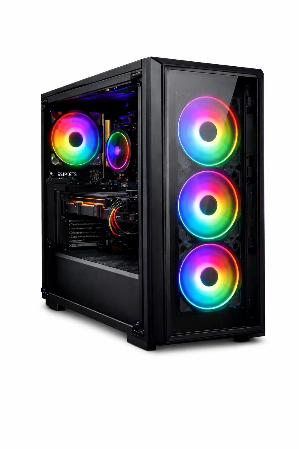 - 🎮 RGB Cabinet with Cooling Fans Stylish black cabinet equipped with 4 RGB cooling fans for efficient airflow, system stability, and an attractive gaming-style look.