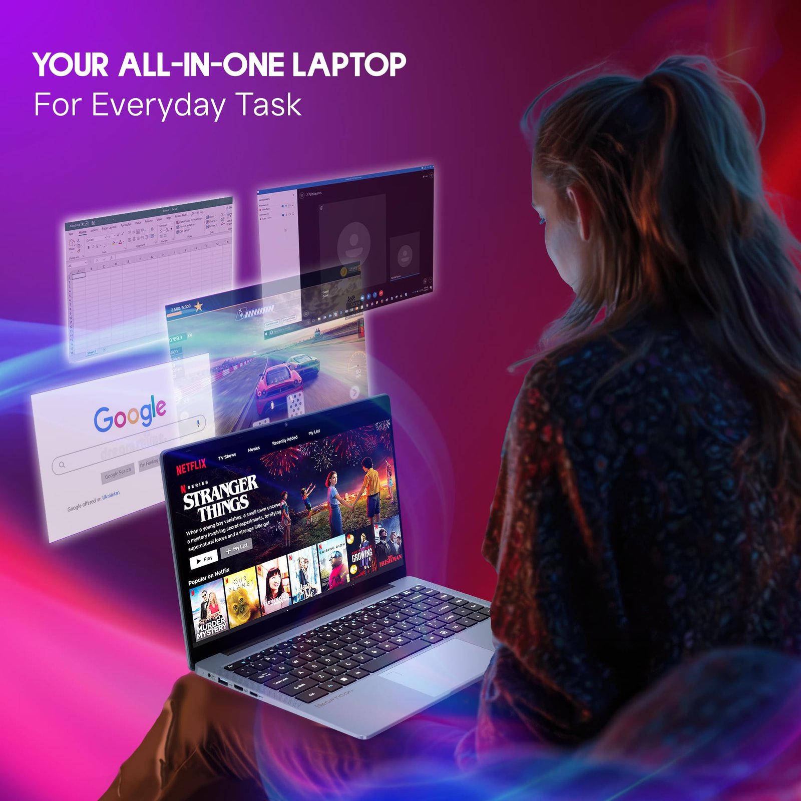 - Built for Daily Use: Lightweight at just 1.3kg, it features a webcam, stereo speakers, Bluetooth, and WiFi, making it perfect for everyday tasks, video calls, and entertainment on the go.