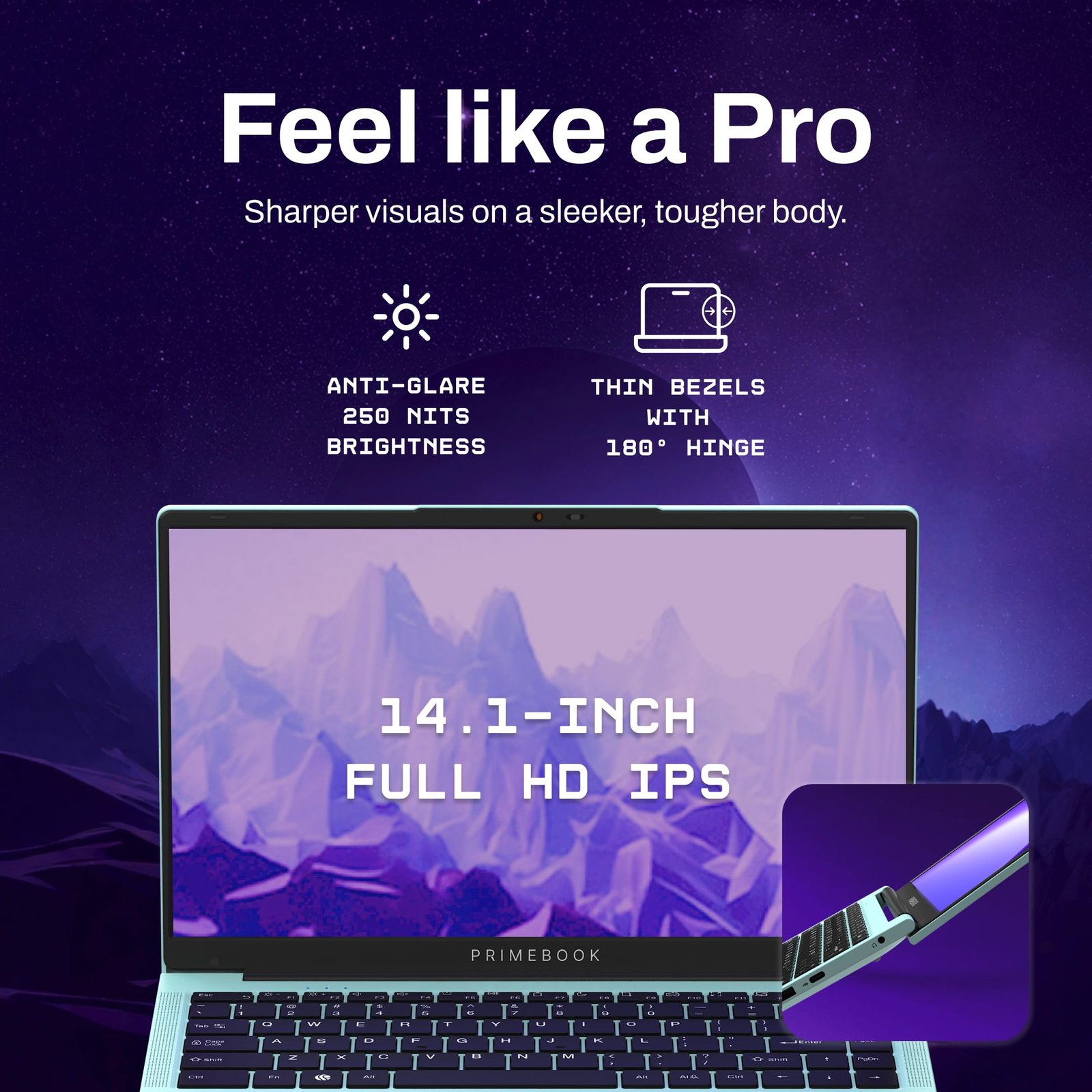 Primebook 2 Pro 2025 (New Launch) | 8GB RAM, 128GB UFS Storage | 14.1-Inch FHD IPS Display | 14 Hours Battery | MediaTek Helio G99 | Android 15 (PrimeOS 3.0) | Backlit Keyboard | in-Built AI (Aqua)