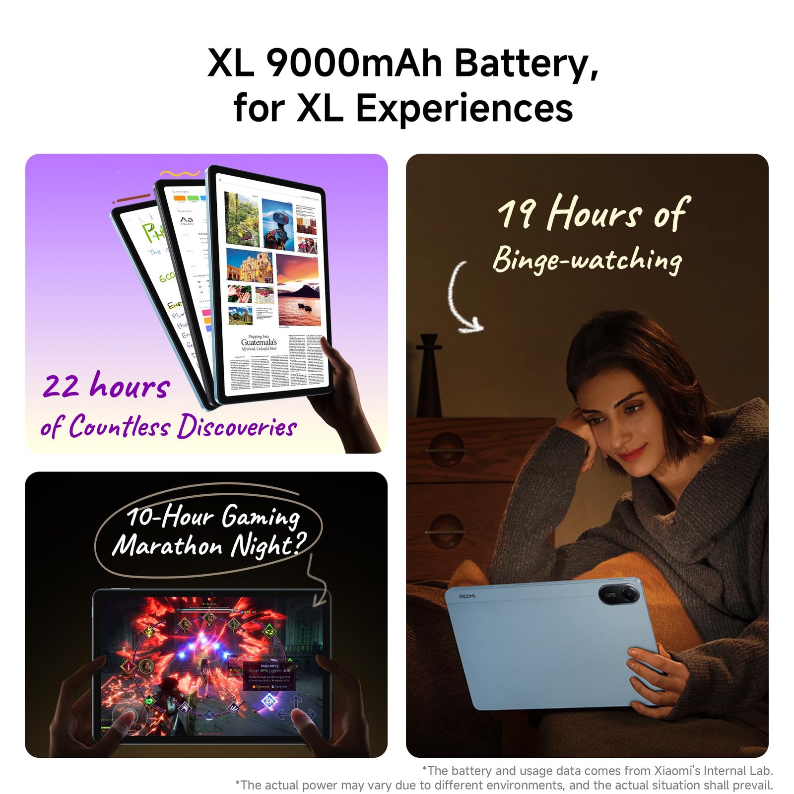 - Largest Battery on an 11-inch Tablet* – Experience all-day power and beyond with the segment’s best battery performance*. Designed to keep up with your nonstop lifestyle, it delivers extended usage and quick 18W fast charging so you’re always ready, no matter how long your day lasts. *below 20K segment