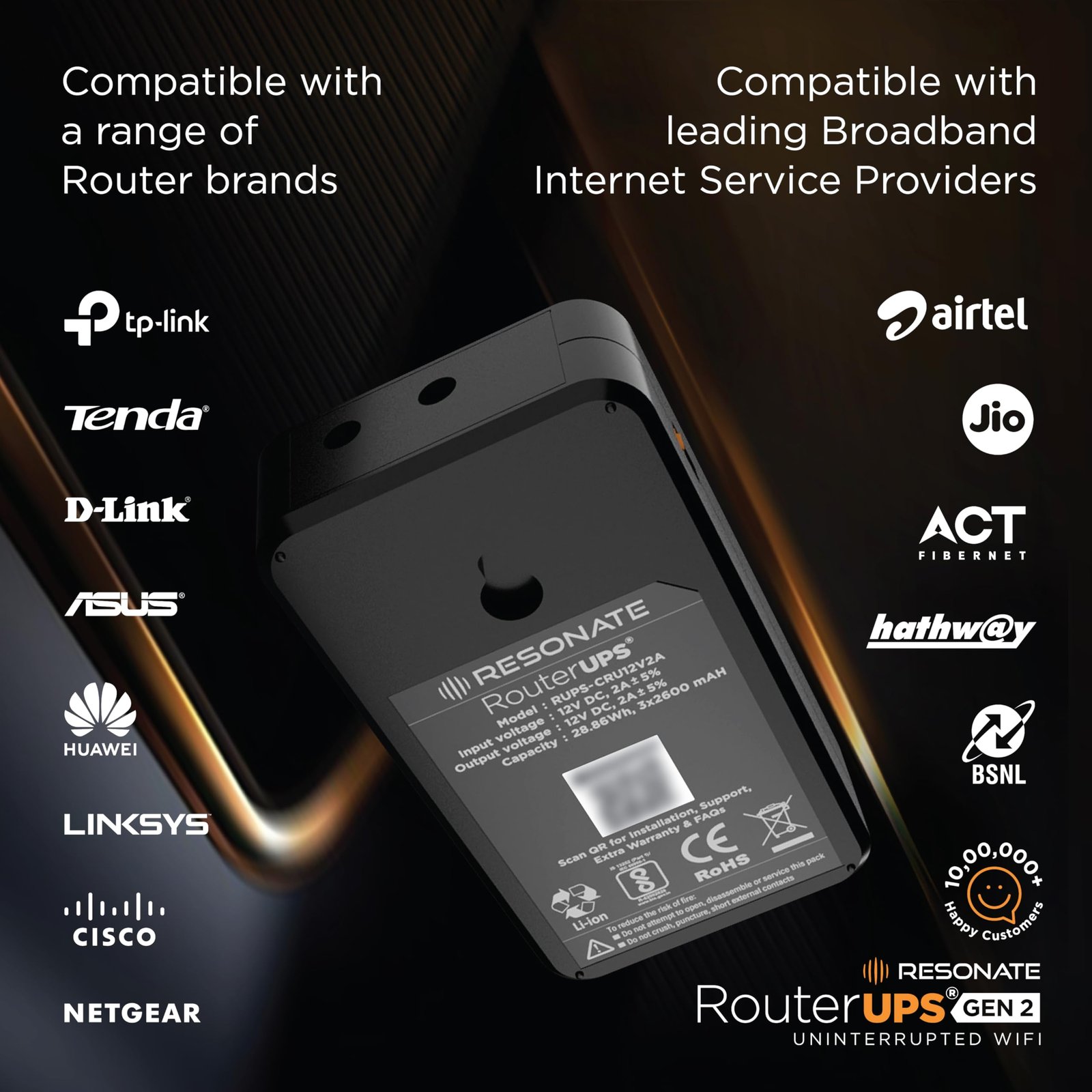 Resonate RouterUPS® Gen2 | Original Router UPS for 12V WiFi Router & Modem (Supports up to 2A) (7800mAh - 95% Longer Power Backup) | Compact Mini UPS with Intelligent Charging (Upto 6 Hrs Internet)